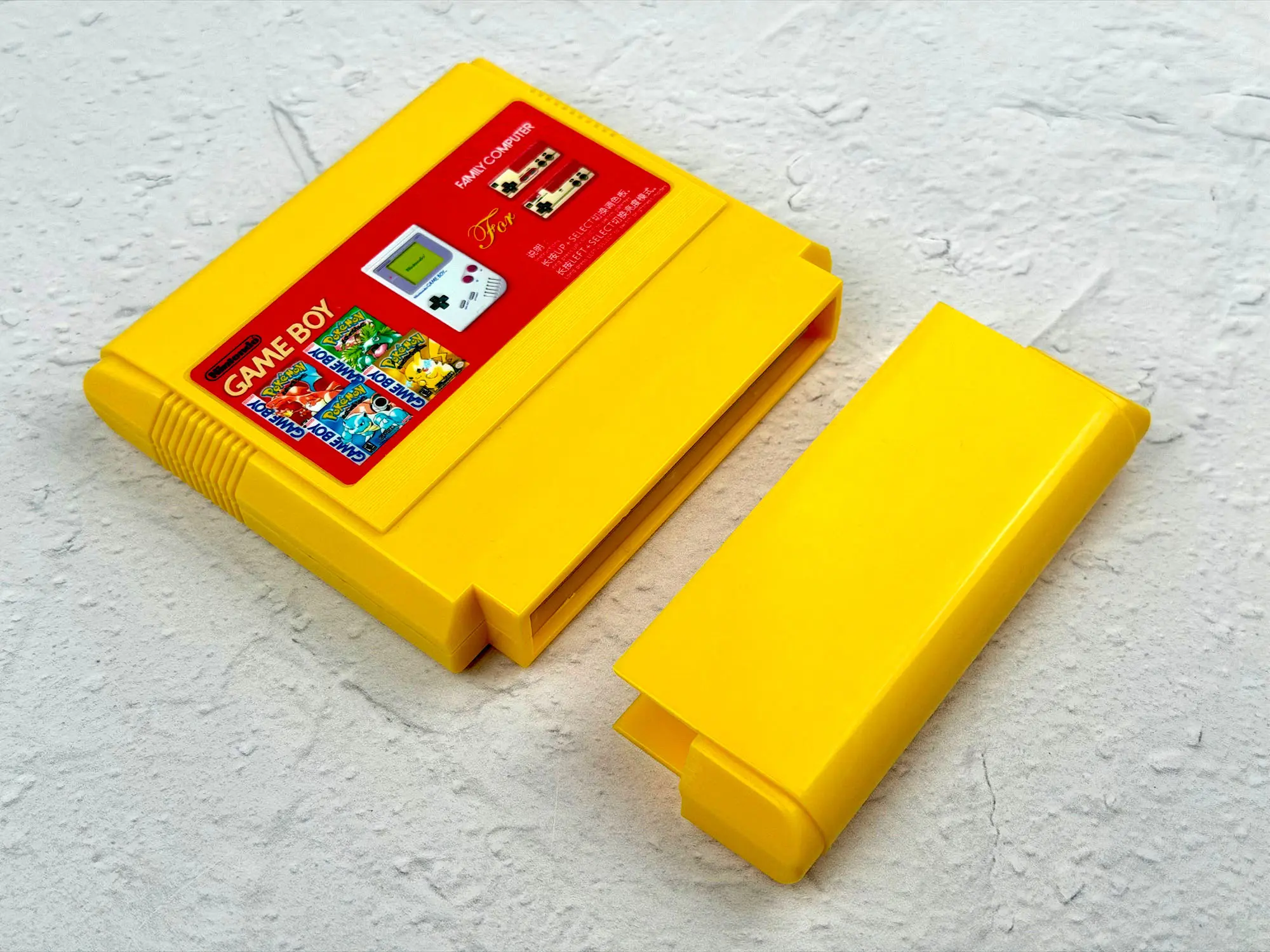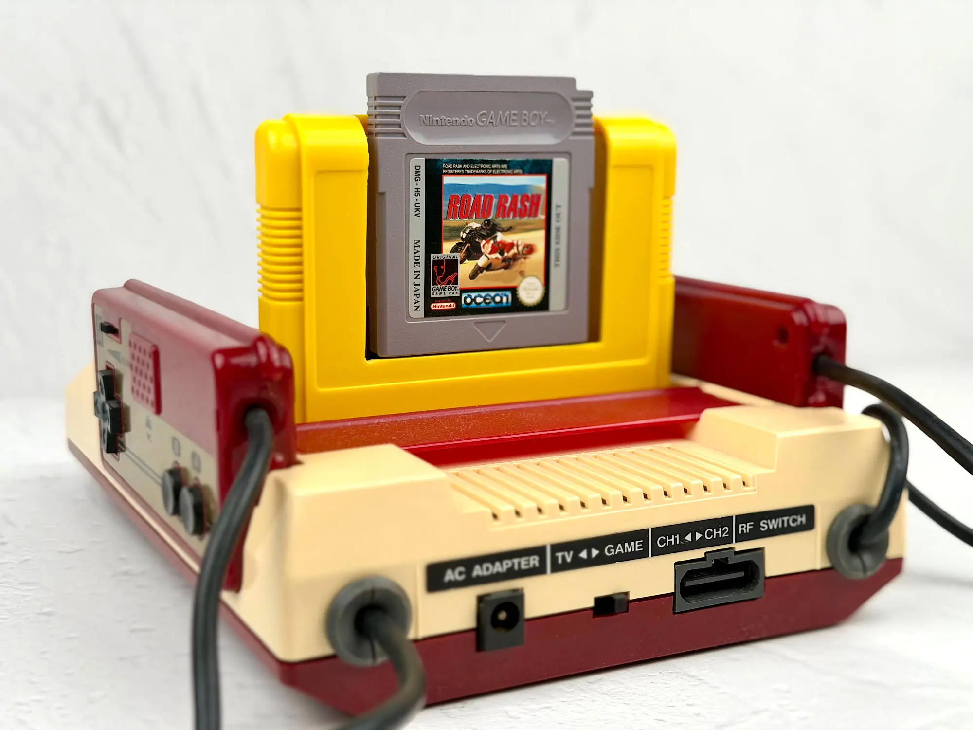 But once you look at the back, you can immediately see the big potential: this cartridge-adapter lets you run original Game Boy cartridges on a home 8-bit console.