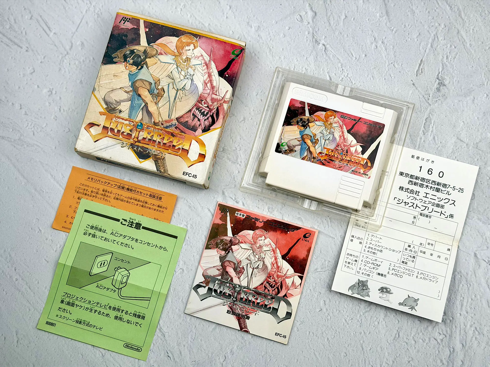Комплектация вполне стандартная для японских RPG той эпохи. Только картридж выделяется нестандартным размером и формой.