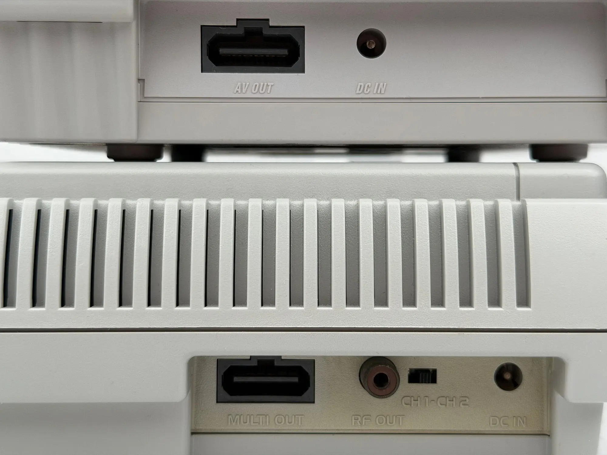 Обратите внимание на подпись у разъёма на классической Super Famicom — там написано MULTI OUT.