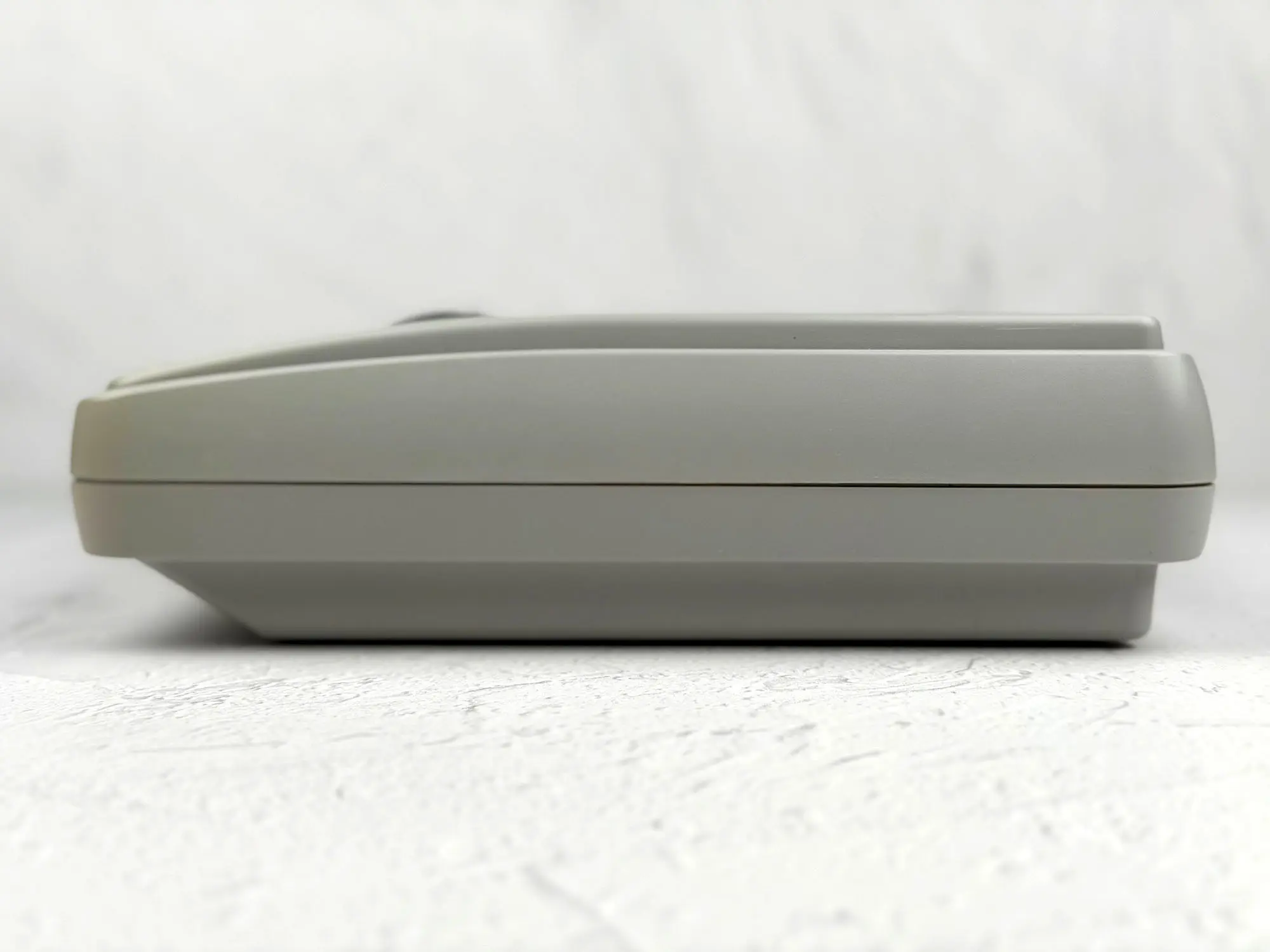 Сбоку у Super Famicom — полный минимализм: никаких разъёмов, портов или вентиляционных решёток. Всё спрятано внутри.