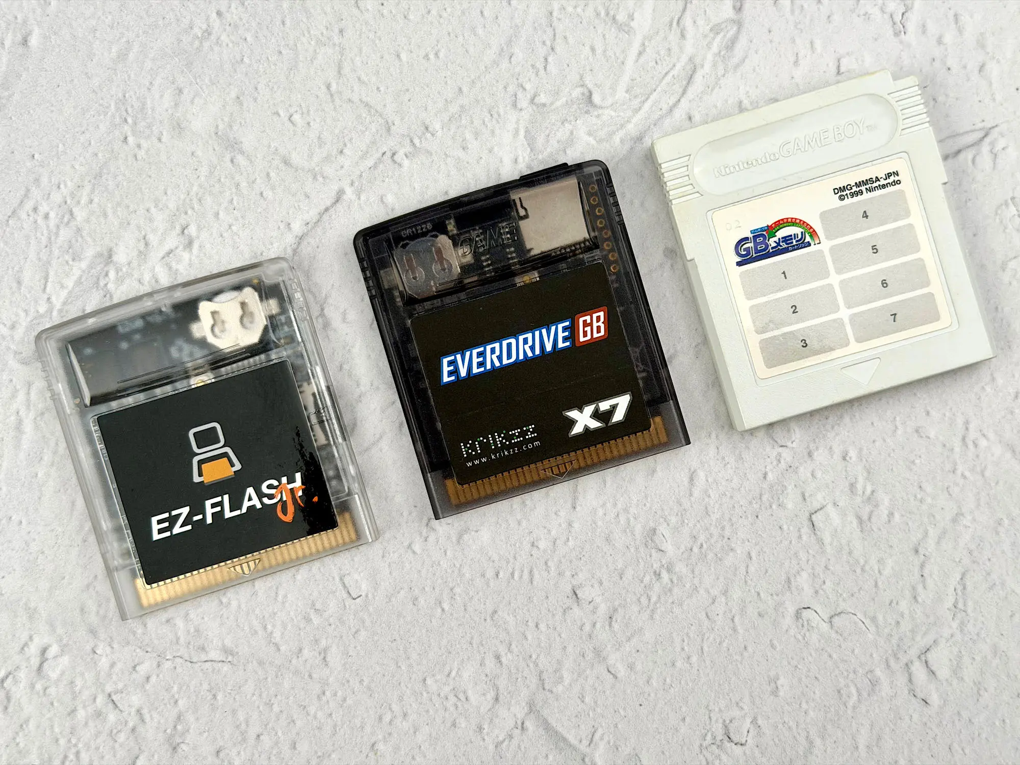 Для теста я взял три картриджа: EZ-Flash Junior, Everdrive GB X7 и классический Nintendo Power.