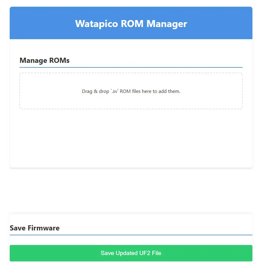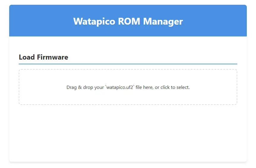 Перетащите файл watapico.uf2 в окно сайта. Сразу откроется следующее меню: