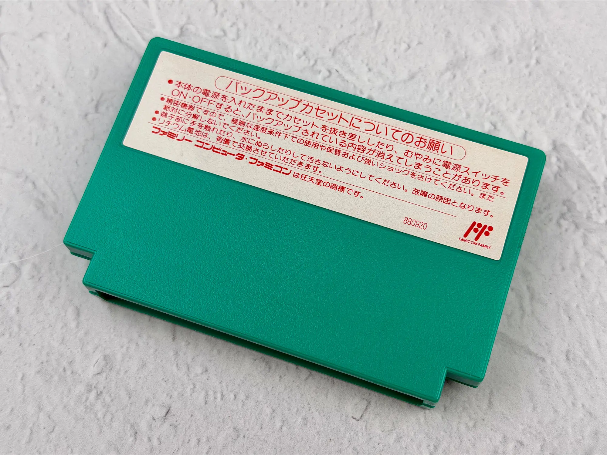 The green cartridge matches the box design perfectly and really stands out among other Famicom games.